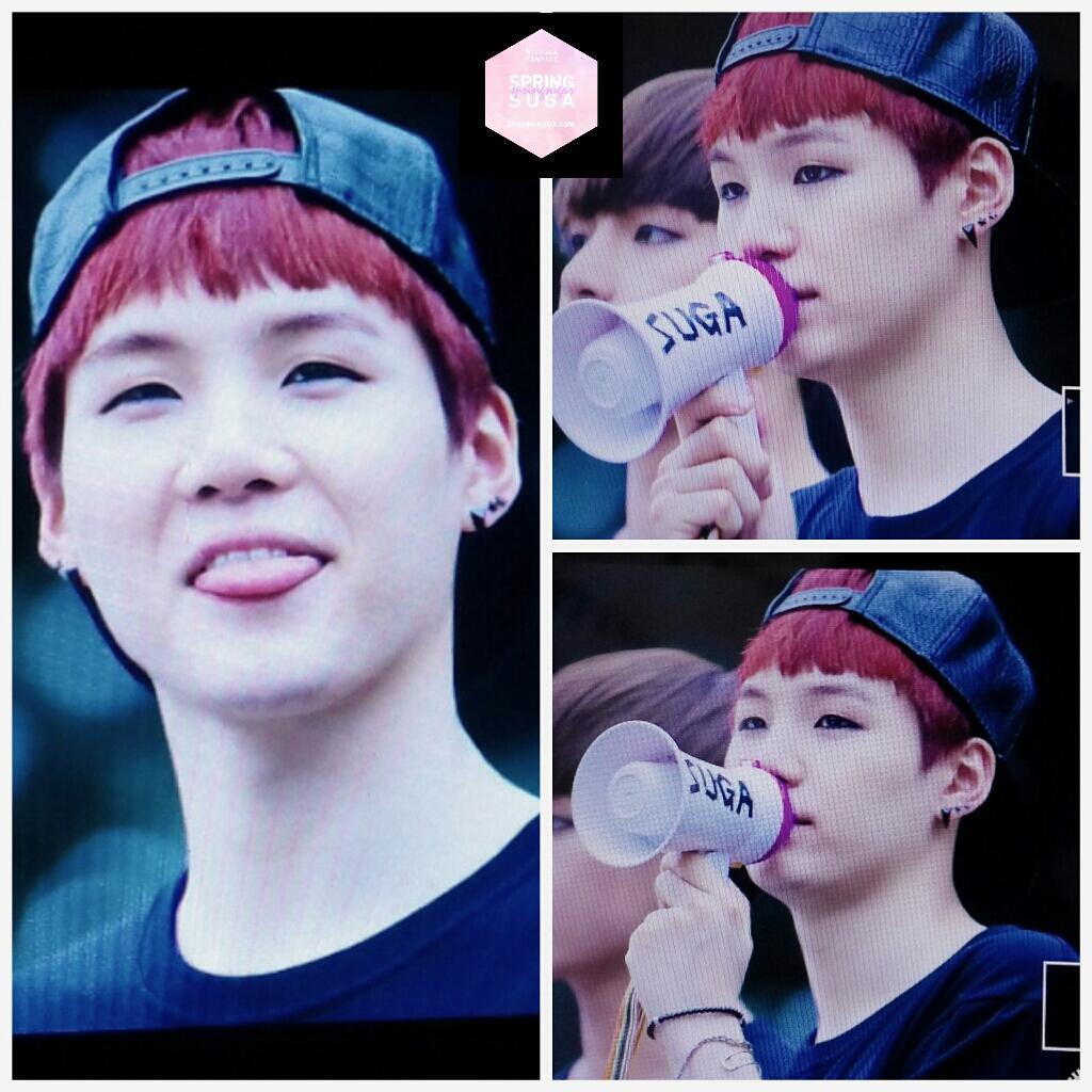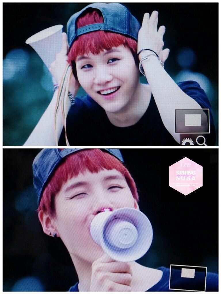 "Hello, it's Suga. Our ARMYs, whose throats are probably sore from cheering for us at Music Core and at the Choon-cheon K-Pop Concert!! Thank you so much hurhur whenever we hear your cheering, it's always the best!!! I love you, ARMYY!!"